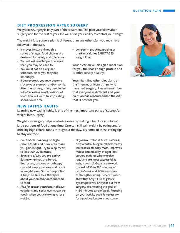 Forty-five page handbook for bariatric patients. Design elements follow brand guidelines. Client: Overlake Hospital.